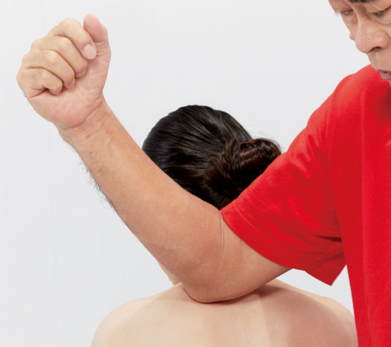3. 再用手肘深壓,並以逆時針方向慢慢壓揉3次。