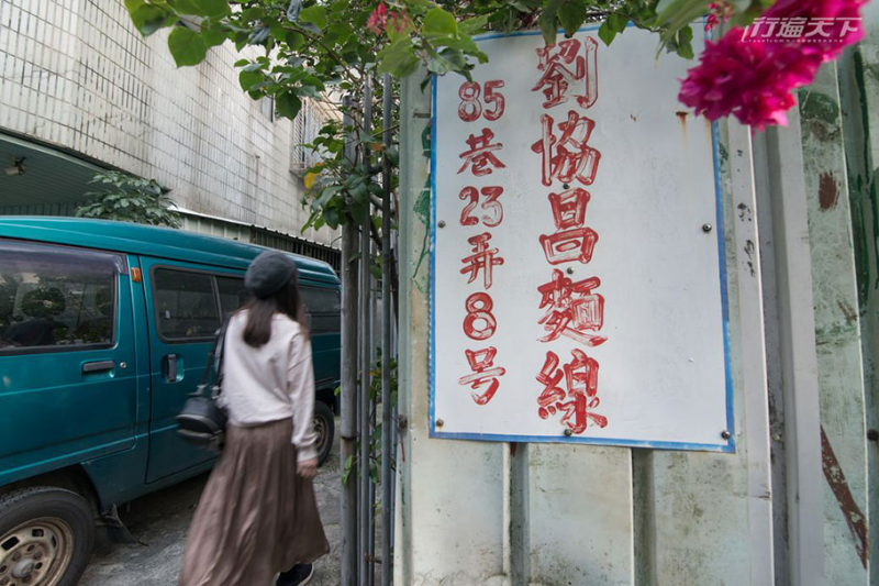 拐彎後在住家門前繞來繞去,終於在轉角的鐵皮樹叢間找到了有「劉協昌麵線」招牌的小巷!