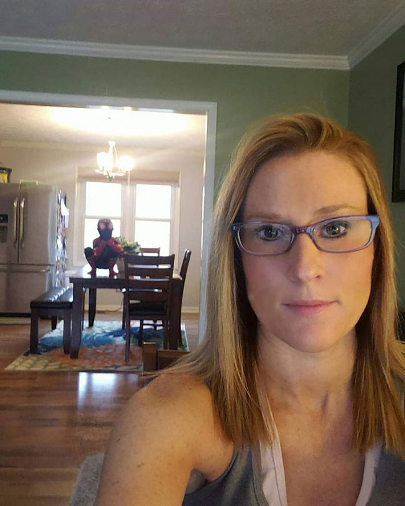 1.在家工作第六天:我知道新冠肺炎很恐怖,但是試著跟一個穿著蜘蛛人裝扮的,在後面餐桌上不斷的刷存在感的四歲小孩一起工作看看。
