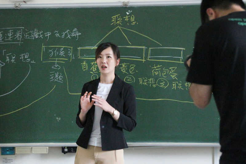 (圖)簡設計師在形象影片中一邊示範自己獨特的轉譯聯想法,一邊闡釋自己對於回歸校園傳授知識的強大決心。