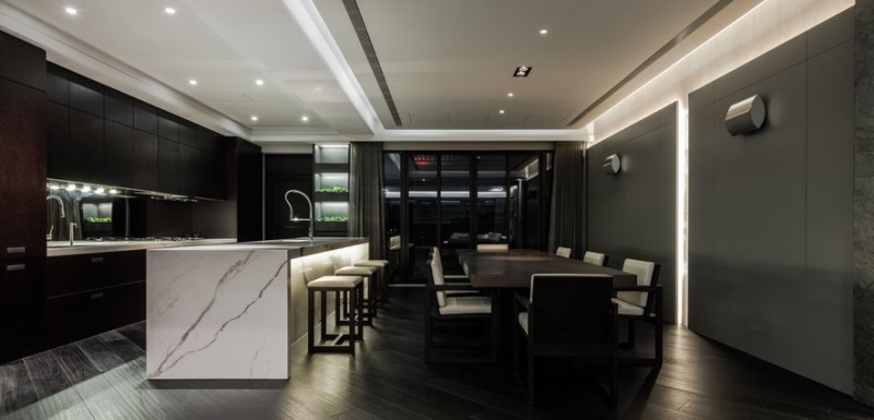 (圖)以黑白灰作為空間基質,並援引岩塊、木材的天然紋理,形塑「天光雲影共徘徊」的壯麗之美,接連拿下英國Outstanding Property Award、美國 International Design Award、美國Muse Design Award、杜拜DUBAI Competition等多座獎盃!