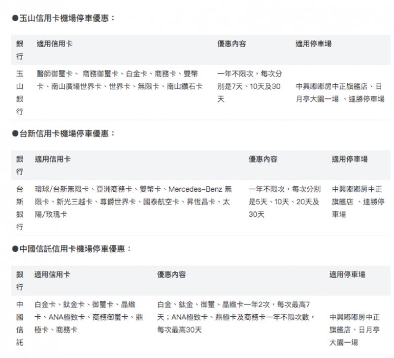 信用卡機場停車優惠