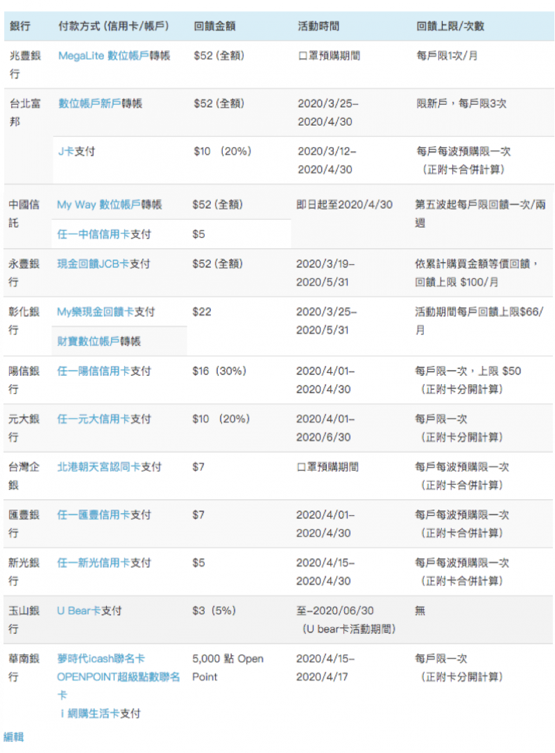 原文連結:口罩預購2.0懶人包|這樣繳費最划算!(信用卡/網銀回饋、超商優惠整理)
