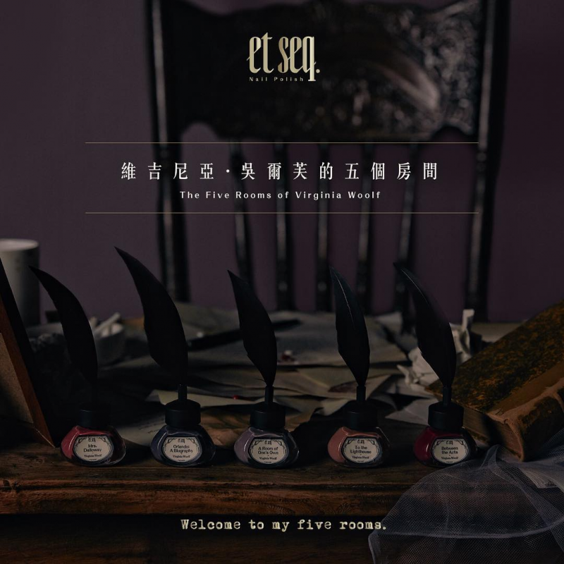 如果你是文青少女,你絕對會超愛《et seq.》!《et seq.》是一個蠻新的台灣指甲油品牌,以使人透過「顏色」,找尋「自我」為理念,用文學包裝,每一瓶指甲油都是以文學家、經典文學名著來命名,且外型設計成墨水瓶般,壺狀的瓶身加上一根長長的羽毛瓶蓋,塗指甲的時候就彷彿時光倒流回經典文學的時代,超級浪漫~不只外表好看,指甲油本身飽和度也高、耐久不易剝落,快乾之外顏色也很特別!高顏值又高品質,超想包色啊~(小孩子才選擇,我全都要!)