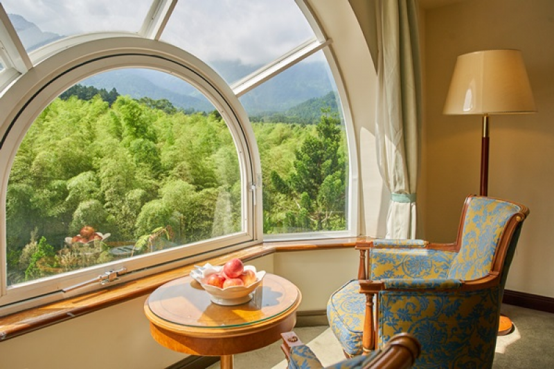 回到室內仍覺清爽宜人,這是因為飯店重金導入戶外新鮮空氣的空調系統,房間的負離子可達7,800以上個單位,遠高於溪頭園區的3,000至4,000。此外,可以在純淨的山泉水游泳池戲水,或沉浸於山泉水三溫暖浴池,還是到檜木打造的山泉水湯屋泡湯,每間客房也有山泉水的滋潤,皆能吸收大量負離子,值得在此度假慢活與修養身息。