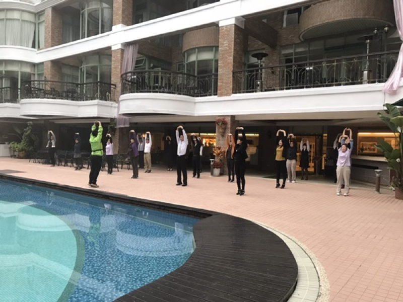 品牌理念訴求健康、休閒、藝術與精緻品味、貼心服務,「溪頭米堤」抗疫第一步,早在三個月前,李麗裕總經理於負離子含量擁有最高密度、百萬個單位的山泉瀑布泳池前平台及四周,每天上午與下午推出共二場的養生健身操,不僅是員工每天第一堂要務,更帶動遊客來參與,醫學研究負離子有空氣的維他命之譽,這陽光、空氣、水激盪出最可貴的大自然活力,歡迎大口深呼吸,全身通體舒暢。