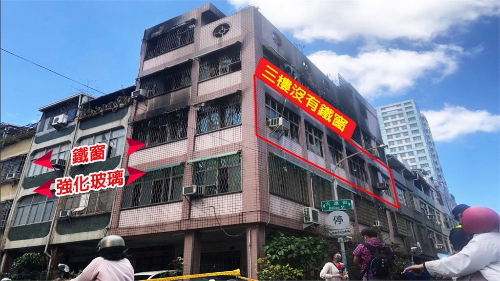 位在三角窗的房子,對外窗都是強化玻璃,其中一面全部加裝鐵鋁窗,另一面只有三樓沒裝、四樓裝一半,外界就懷疑,這影響了逃生與救援的關鍵時間。