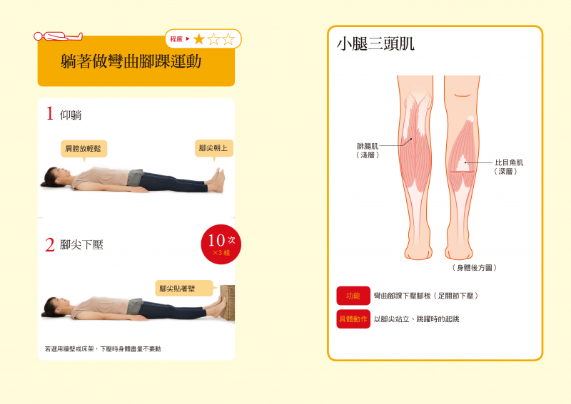 小腿三頭肌是小腿的肌肉,是下壓腳尖時會用到的肌肉。