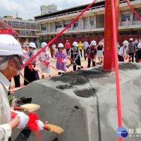 彰化高商「廣藝館」新建工程動土,總統府資政姚嘉文、教育部政務次長范巽綠、彰化縣長王惠美、彰化高商校長粘淑真等人進行動土儀式。圖/記者鄧富珍攝