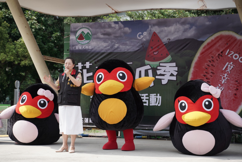 【台北訊】花蓮縣長徐榛蔚偕同縣府農業處處長羅文龍、花蓮縣議員吳建志、農委會農糧署東區分署長陳昌岑、花蓮區農業改良場副場長楊大吉、中華民國農會常務監事白添枝、花蓮縣農會理事長余國基、常務監事呂律均、總幹事官俊彥、瑞穗鄉農會總幹事黃盛皇、玉溪地區農會總幹事蔡宗翰、新北市農會總幹事楊棟樑,於今(9)日下午,在台北希望廣場辦理「花蓮西瓜季•甜美鮮送」行銷推廣活動;除了邀請被廣稱為「叫賣達人」的寶島叫賣哥,為現場帶來熱絡互動,同步加碼推出旅北花蓮人購瓜贈獎限量活動,及現場購瓜優惠贈;期盼讓更多消費者感受花蓮大西瓜剖開的剎那,撲面直衝的濃郁果香與消暑氣息!也為離鄉的花蓮孩子們帶來專屬於家鄉的產季風味!