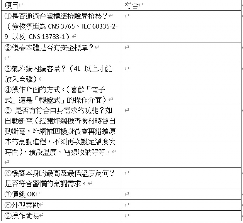 氣炸鍋挑選Checklist ✔