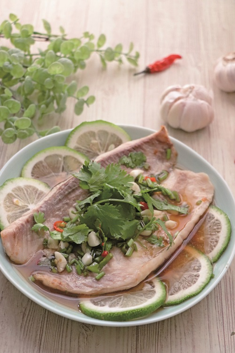 3 盛盤,打開紙包,拿掉上面的薑片和蔥段,淋上事先調好的醬料,即完成。