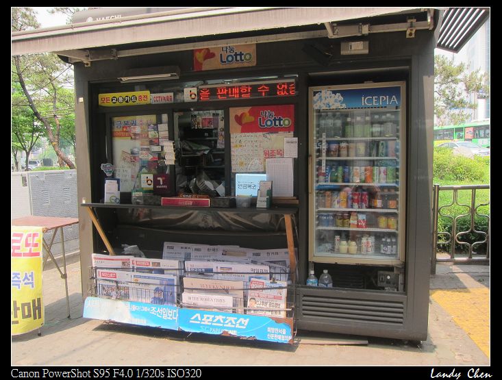 這是韓國很常見的小攤子,裡面除了賣飲料之外、也有販售報紙、樂透....等