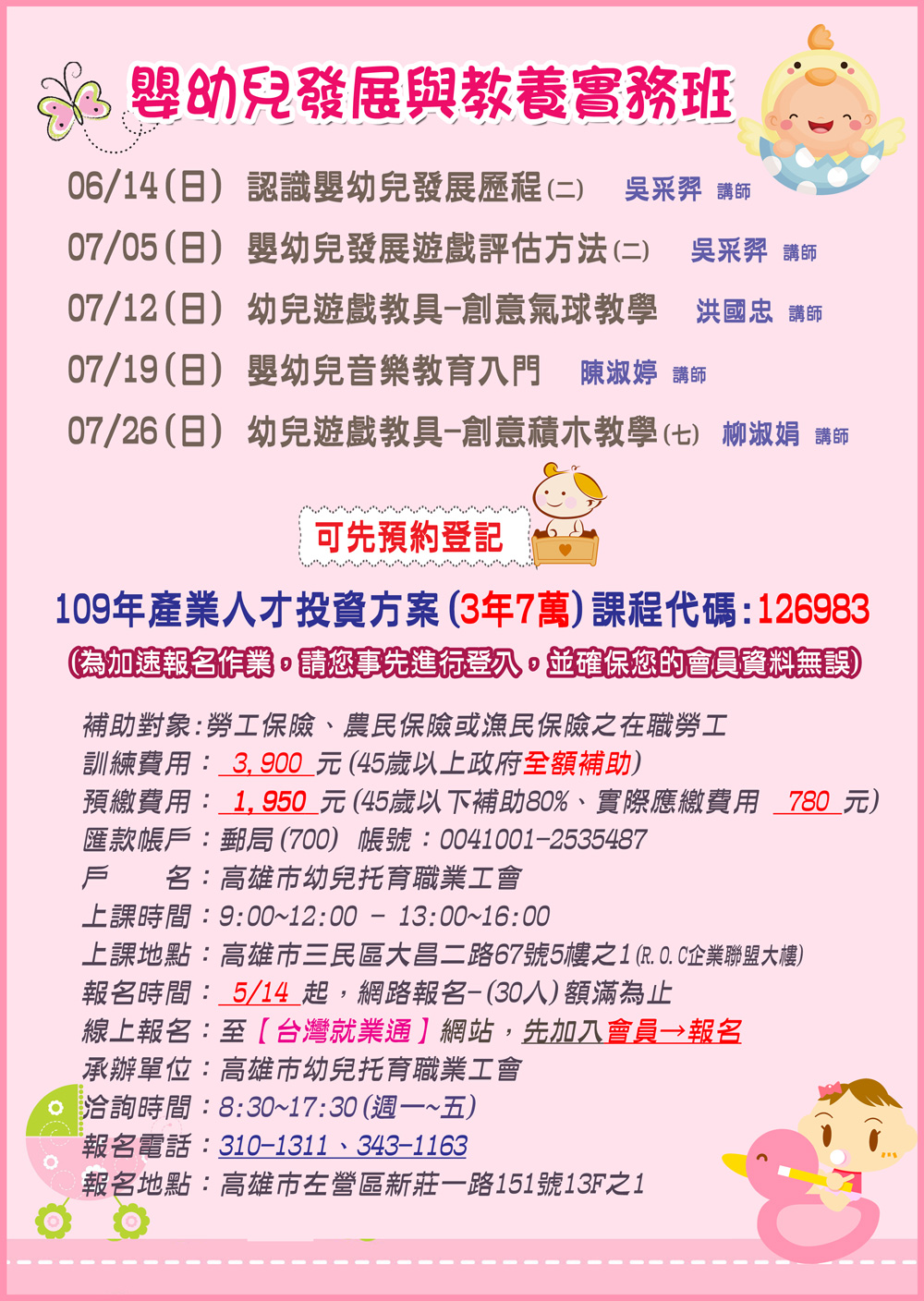 109年度產業人才投資方案-高雄市幼兒托育職業工會舉辦課程