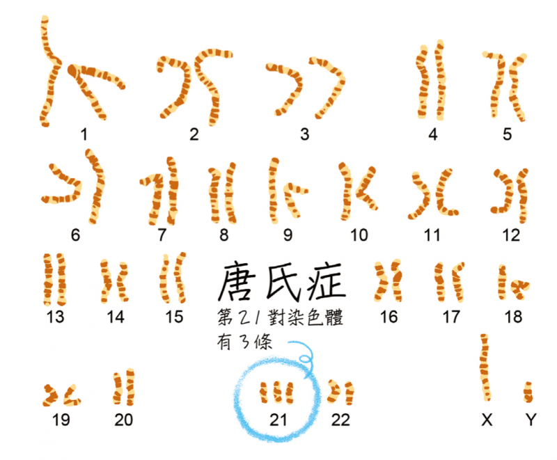 這情況常導致出現染色體不分離的現象,因而提高了罹患染色體異常的「唐氏症」的機率。正常人的染色體是兩兩成對的,而所謂唐氏症是指21對染色體因不正常的分離現象,多出了一個。這種不正常的分離現象會隨著孕媽咪年齡的增加,出現機率也提高許多,尤其超過35歲的產婦產出唐氏症兒的機率與年齡成正比,所以建議必須接受羊膜穿刺檢查或非侵入性產前染色體檢測。