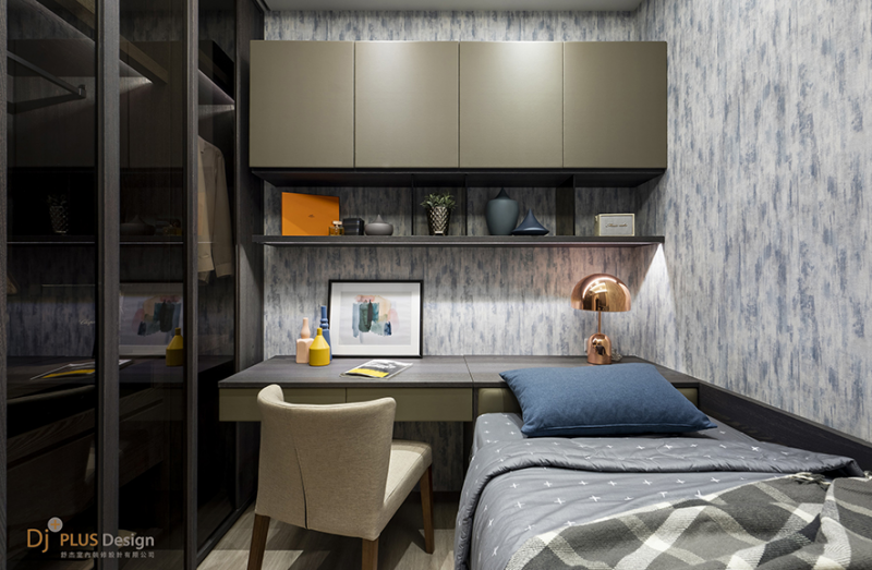 (圖)書桌與床頭結合呈現完美的機能性,主色以淡雅藍融入場域,使人身心沉靜安然。