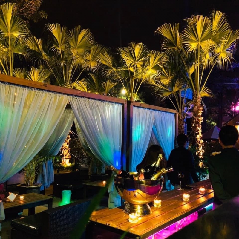 MythOcean的戶外包廂區栽種了整排棕櫚樹、隨風飄逸的布幔,在柔美的燈光搭配下,重現熱帶南洋風情,讓人彷彿置身海島沙灘當中,許多知名藝人及正妹網紅紛紛慕名前來取景拍照,張先生介紹時特別強調:店內的調酒和餐點也都是取經於南洋峇里島,進一步調整成符合台灣民眾的口感習慣,另外也引進五款澳洲最受歡迎的Taltarni托塔尼香檳氣泡酒,五星級華麗的層次和韻味,非常適合慶生、慶祝派對和朋友們共享。