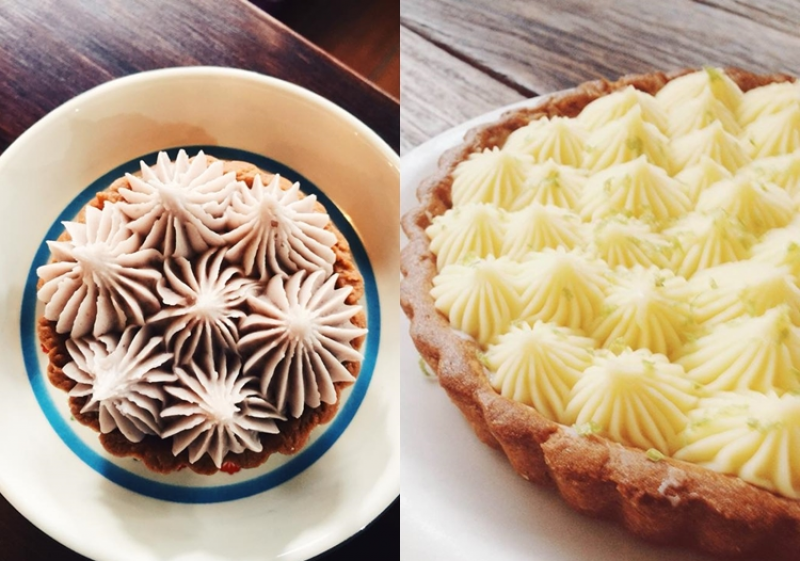 萊夢塔是歪歪歪的招牌甜點之一,喜歡酸的朋友們注意啦,連歪廚都稱它為靠北酸的等級呢!超級超級酸的檸檬餡一定要跟微甜的塔皮一起入口,這樣才會形成剛剛好的甜度唷!另外,儂編私心推薦他們的桑椹甌蕾,桑椹醬是他們自己現榨製成的果醬,再搭配小農鮮乳,口感除了非常的細膩之外,還有一點泥狀的口感,非常值得喝喝看!