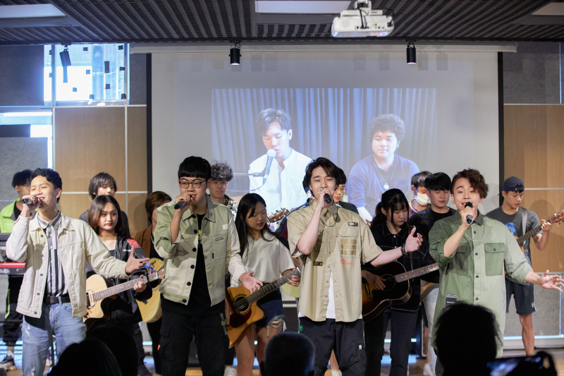 在校生也精心準備了三段Live表演,分別是《我們》、《轉場》和《快樂天堂》,其中《轉場》是完全創作,由流行音樂系同學詞曲創作編曲演出。