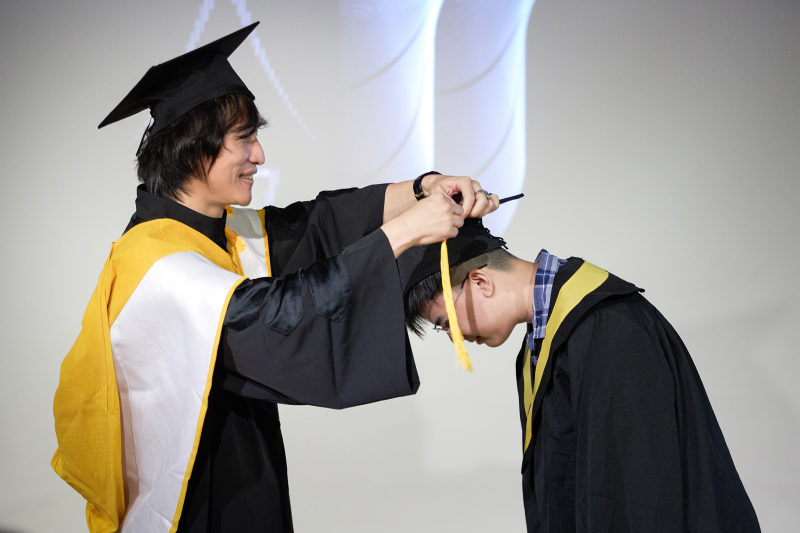 身穿學士服的薛老師並親自主持「撥穗儀式」,現場響起皇后合唱團(Queen)的《We Are Champion》,場面相當激昂感人!