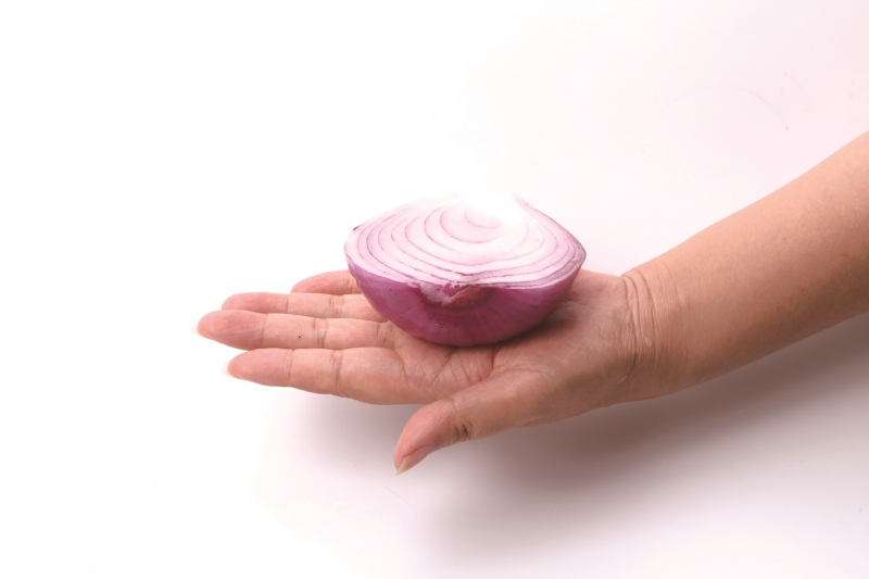 手心可托住半個洋蔥≒80公克