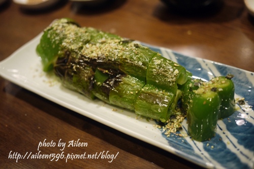 青椒整顆下去烤好後再切片,感覺非常的好吃。