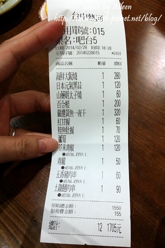 外加一成服務費之後,我們兩個女生竟然吃了1705元。