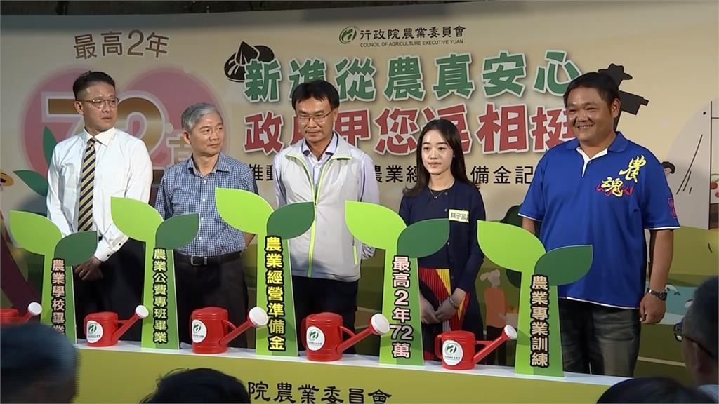 青農農業經營準備金,主要針對18歲到45歲的新進農民,具有農業經營技術和農業經營場域,2年最多可領36萬到72萬元。