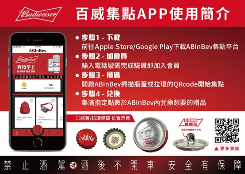 要如何得到百威啤酒推出的各項贈品?只要購買百威啤酒指定品項,並下載【ABInBev集點平台】,掃描拉環或瓶蓋內QRcode即可參加集點活動兌換贈品。首波話題聯名贈品大獲好評,幾乎兌換完畢,預計7/22應好評再加碼上架。熱愛百威的你還不趕快邊喝邊集點,優先搶下一波超值好禮的名額!