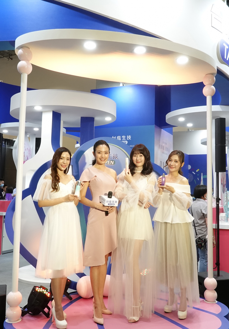 今年生技大展,臺鹽展現研發實力、產品品質優勢,集結多項獲獎產品及首度亮相新品一次開箱放閃;有延緩年齡「膠」慮的綠迷雅保濕活潤系列,極致雙重科技、再創抗皺奇蹟的綠迷雅緊緻抗皺系列, 24小超能亮的綠迷雅淨透美白系列,屢獲國際大獎殊榮的護牙齦抗敏系列牙膏、絲易康60植萃健髮系列,關鍵錠PLUS等明星商品,以及發揮核心優勢開發的「蓓舒美海鹽抗菌洗手露」、「SUPER防護乾洗手」的防疫商品,更有來自喜馬拉雅山珍貴手採、潔淨無汙染的喜馬拉雅手採玫瑰鹽、地中海生態保護區天然日曬的地中海生態海鹽首度亮相。完整呈現臺鹽守護健康美麗的承諾,傳遞「全人健康新主義」的品牌形象與核心願景!