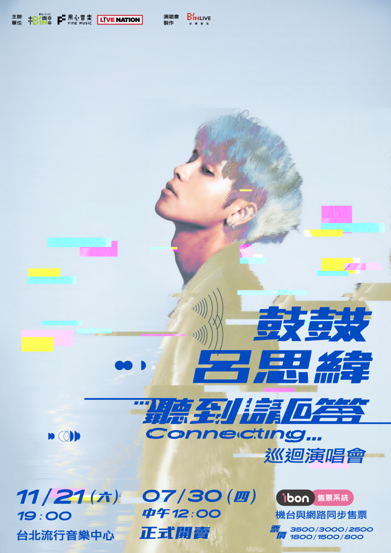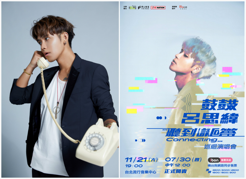 11月21日「聽到請回答Connecting…」巡迴演唱會,是鼓鼓呂思緯出道至今極致散發自我能量的一場大型表演,一場融合精彩演唱、帥氣舞蹈、樂器飆玩等個人魅力集大成的感官大秀即將登場。8月1日下午3點鼓鼓將在台北信義新光三越香堤大道廣場舉辦「聽到請回答 Connecting…」演唱會簽票會,希望見到好久不見的歌迷,並預告會帶樂團演出,帶給歌迷不同的感受。「聽到請回答Connecting…」巡迴演唱會,歡迎使用「振興三倍券」及「藝FUN券(開賣首日14:00後)」購票!