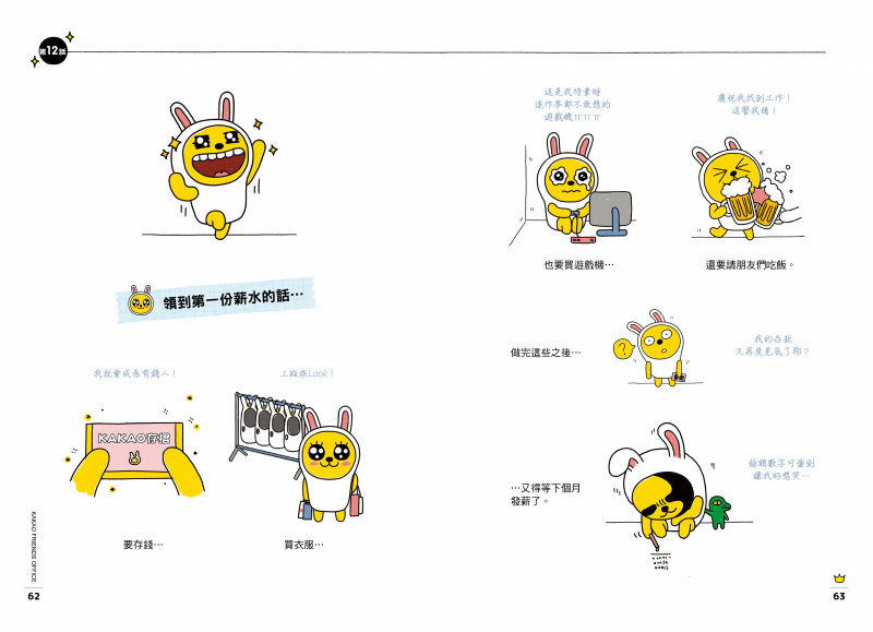 本書便是以「KAKAO FRIENDS進入職場會是什麼模樣」為主題,並依照與該主題相符的世界觀及設定加以改編而成。