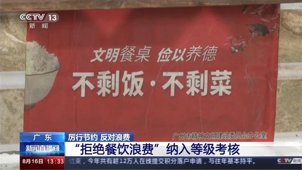 很多餐廳都在顯眼處放上避免飲食浪費的宣導。廣東省甚至公佈餐飲業法則,要求「食材精準量化」,淘汰剩菜指數較高的品項。在餐飲節約做得好的餐廳,可得到較高的分數。