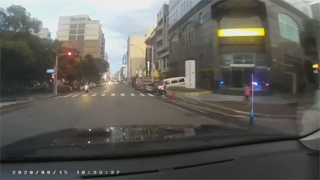 來到大十字路口,警車放慢速度,確認沒有來車後,趕緊駛過。周圍街景快速變化,員警加速狂飆。