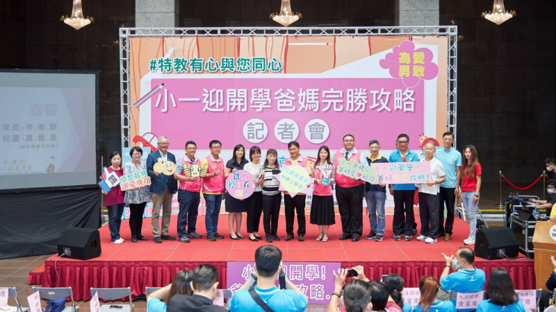 今年有近20萬名小一生入學,據統計情障生在約佔6%,一班25個孩子,平均有每班1到2個特殊生,正因為其特殊,成為老師、同學、家長必須面對的存在,學習如何相處互動,是親師生都要預備的功課。臺北市國小家長聯合會李俊賢總會長邀請臺北市政府教育局何雅娟副局長,與臺北市各個國小家長會會長共同為小一家長加油打氣,遇到孩子反映發生衝突時,切記把握「停、看、聽」的原則。