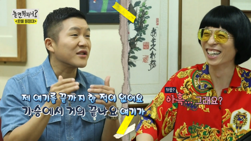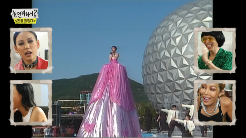 話鋒一轉,李孝利突然對前輩嚴正化嗆聲,「我對大姊有話說,我偶然在YouTube上看到妳的表演,感覺時尚和舞台的方面得需要多用心。」原來李孝利翻出嚴正化的「黑歷史」,公開她在1993年的《眼珠》舞台,只見嚴穿上粉色洋裝,但長裙竟有2層樓高,還得出動4個工作人員在裙底推車移動她,但沒想到無厘頭的服裝讓劉在錫眼睛一亮、直說「這個挺棒的」,讓4人趕緊拒絕荒唐裝扮。