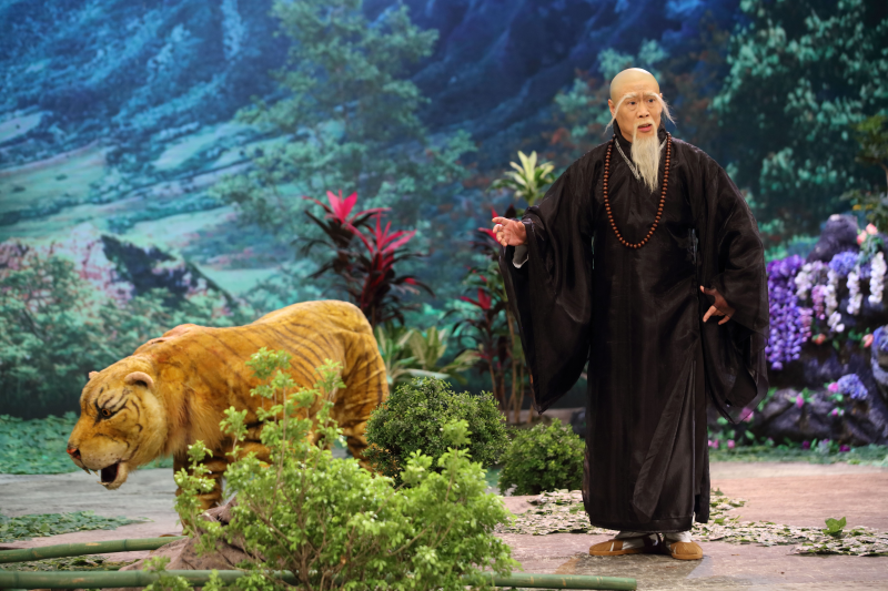 唐朝僧人<�寒山大師>是一位詩僧,著作集結成一部<�寒山詩>,原為儒家弟子卻因為科舉考運差轉而煉丹修道,後來在豐干禪師指點下才前往國清寺學佛,修得歡喜自在。高僧傳<�寒山大師>另外一個驚喜就是讓很久沒有在傳統戲曲露臉的京劇大師朱陸豪也軋上一角,演譯的就是豐干禪師。