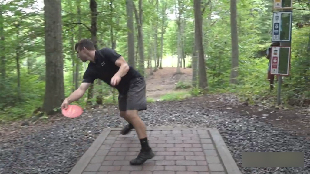 jones在丟飛盤時,因為重心不穩還摔倒,原本以為這一丟會是失誤,沒想到飛盤,竟然穿越了530英尺,約162公尺的距離,飛出林外達陣,這種類似高爾夫的運動,叫做飛盤高爾夫,只是把小白球換成飛盤,但跟高爾夫一樣,目標地都是果嶺上的標竿。