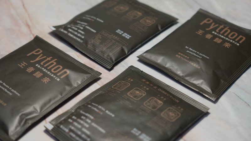 Python常使用於人工智慧系統的開發,給人簡潔的印象,深智數位股份有限公司洞察到電腦工具書的消費族群大多為工程師。首度推出本月出版《Python最強入門邁向頂尖高手之路:王者歸來(第二版)全彩版》同名款Python程式語言濾掛式咖啡包,希望讀者在學習程式語言之餘,也能品嚐Python的風味。