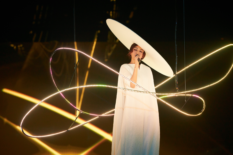 隨後她以「無人知曉」水藍奇姬,這套結構裙是從海洋回收的捕魚網再造環保布料,不僅顏色是獨特的,加上充滿設計的不規則剪裁,歌曲從《日常》的歡樂,轉變到揪心新歌《無人知曉》,精心編曲《魔鬼中的天使》、《寂寞寂寞就好》大合唱,帶領樂迷體驗一一察覺到一一癡迷的音樂轉捩。