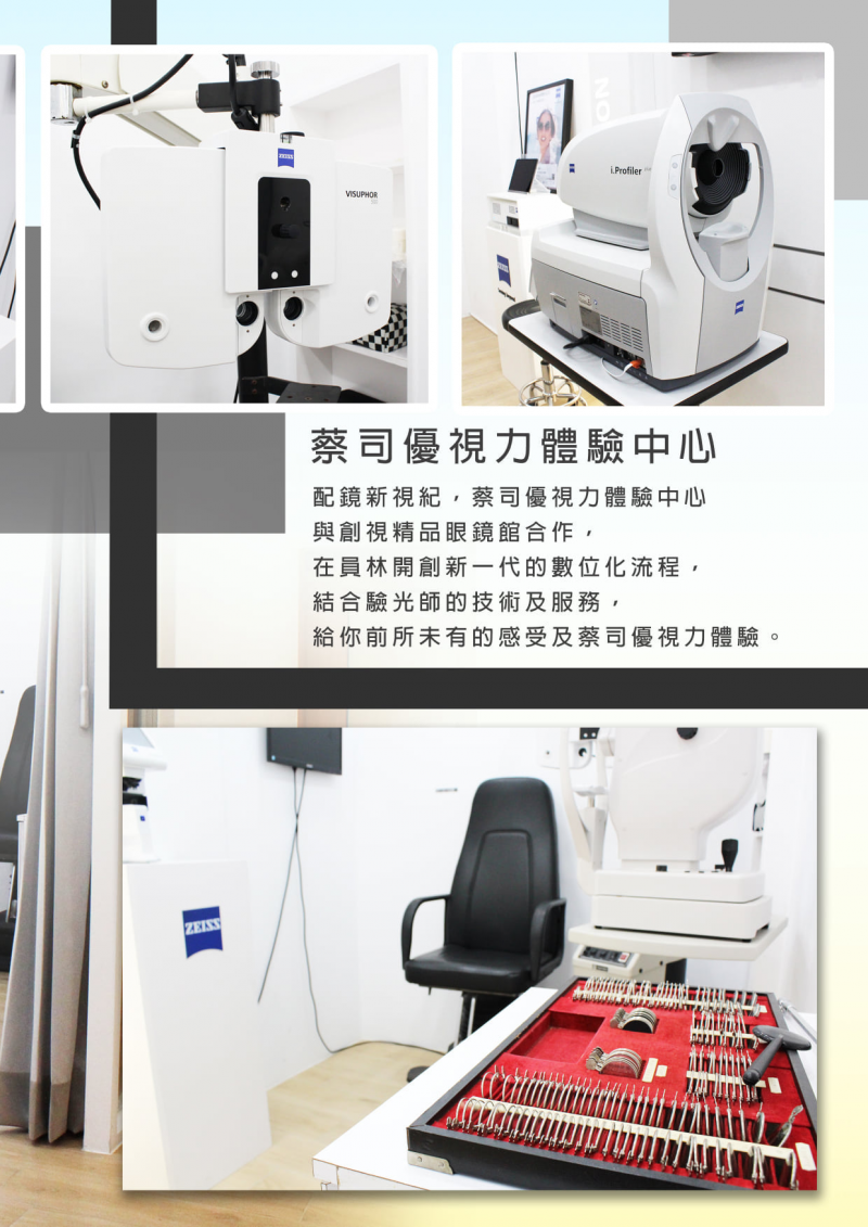 配鏡新視紀,蔡司優視力體驗中心與創視精品眼鏡館合作,在員林開創新一代的數位化流程,結合驗光師的技術及服務,給你前所未有的感受及蔡司優視力體驗。