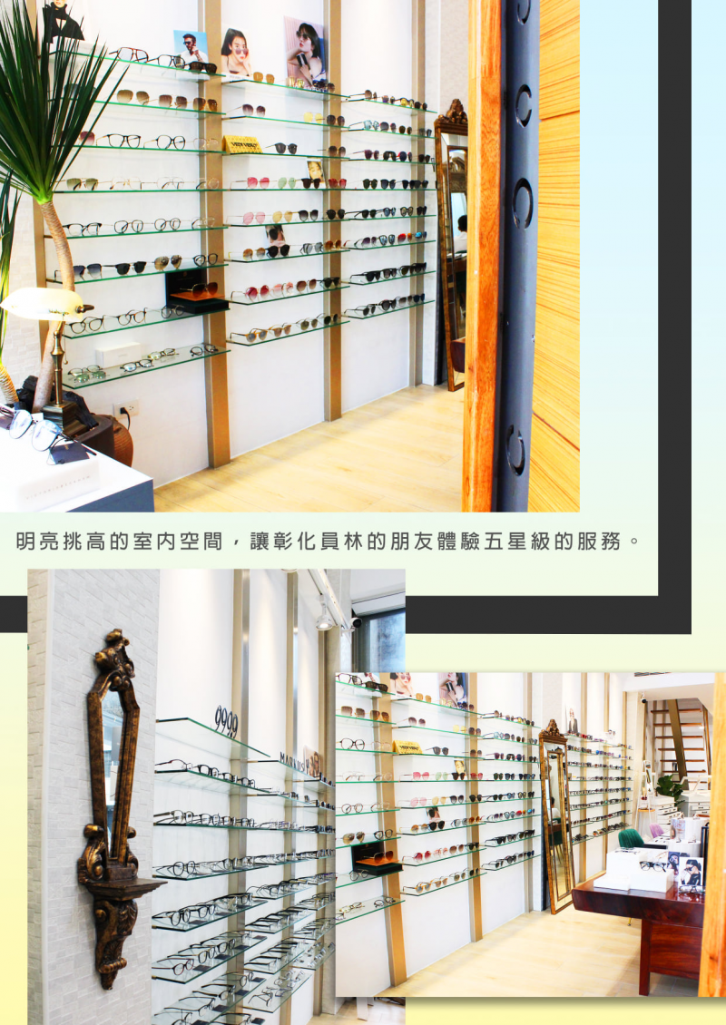 創視精品眼鏡館 主打精品、引進高階儀器、高闊的室內空間,讓彰化員林的朋友體驗高貴質感的服務。