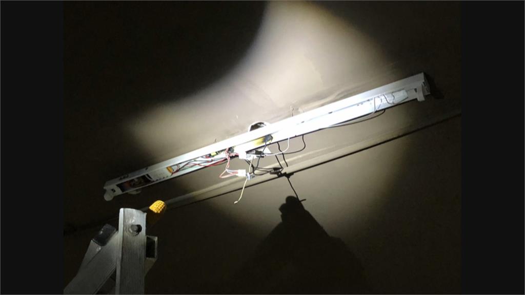 還原現場,燈管線路裸露,懷疑可能是遭電擊的主因,勞檢處也到場勘驗,了解情況。水電師傅,示範標準動作,要換燈泡燈管,要先斷電。