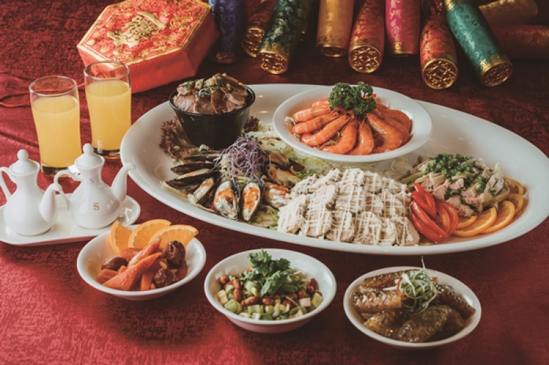 專為尾牙、春酒所設計的「2021犇放歡樂宴」,融合宜蘭在地食材,完整表現台式經典料理的鮮美本味,強調少油炸、健康烹調,更充分代表宜蘭人熱情好客的天性,款待料多味美澎湃又實在,吃巧也能吃飽。首先登場的是餐前開胃菜,香氣十足的「三星蒜苗拌油花生」,帶有淡雅紫蘇梅香的「紫蘇梅蜜蘿蔔」,以及Q彈微酸的「醋溜雕魚皮」,這簡單家常涼拌菜爽口又唰嘴,讓人一口接一口停不了。以草蝦、紹興醉翁雞、沙拉魚卵、蒜味豬腱肉、和風貽貝組合的「泰式蔬果沙拉鮮蝦拼」,同樣帶來鮮美海陸多滋味,清爽又開胃。