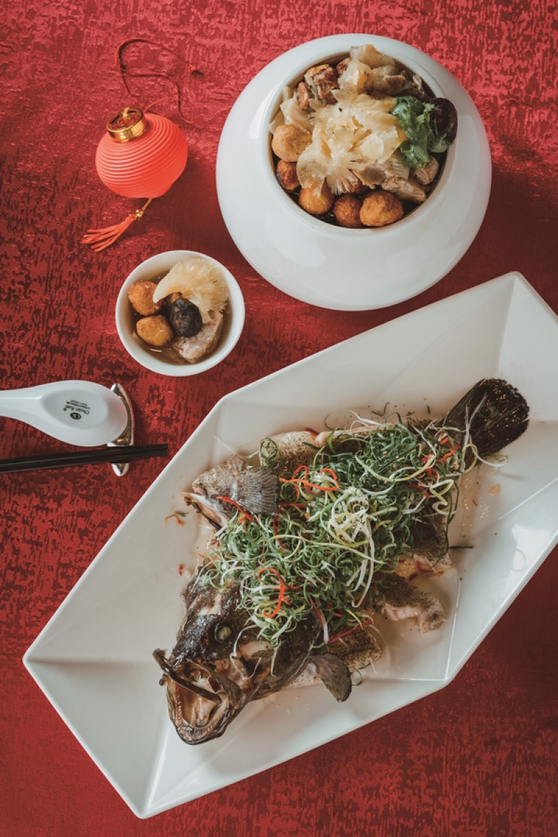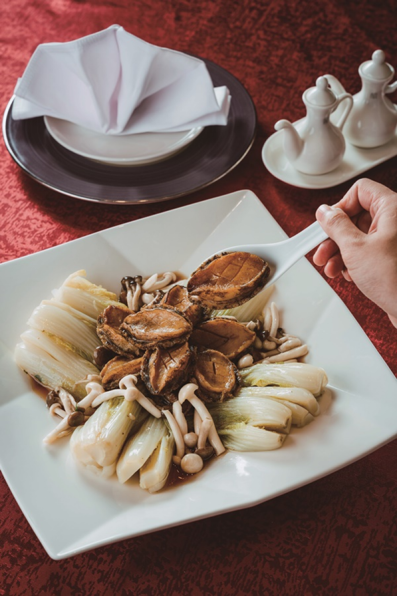 鮑魚和石斑魚都是宴客受歡迎的美味,味道鮮美,廚藝團隊特選肥美大鮑魚,以及石斑魚,皆以純粹蒸煮的料理方式,呈現食材原汁鮮味,為您獻上「蠔皇娃娃菜野菌九孔鮑」和「清蒸鮮露海石斑」,鮮嫩細緻、可口彈牙,值得細細品賞的海洋之味。