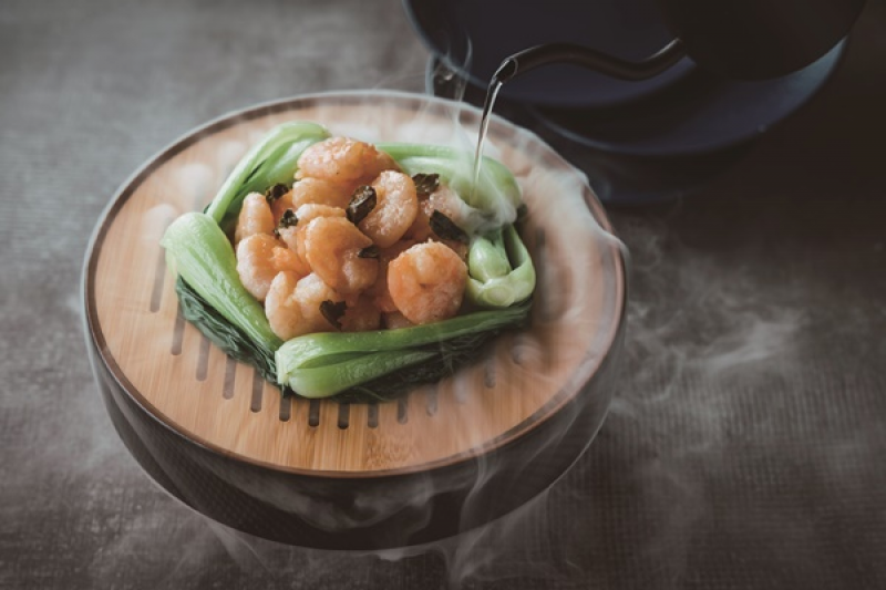 亦或選吃源自杭州地方名菜的杭幫菜龍井蝦仁,將龍井茶茶湯、茶葉與蝦仁翻炒,鮮嫩滋味、散發茶葉清香,上桌時還有注茶湯桌邊秀,水氣渺渺、仙氣飄飄,視覺味覺雙饗宴。