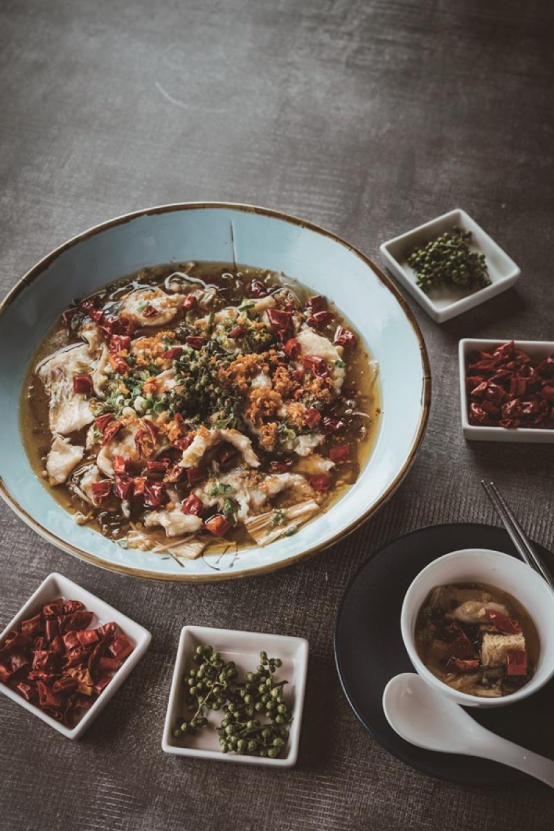 秘製山椒酸菜魚(再加$100),特選鮮嫩鱸魚,農會自製酸菜,加入青花椒,湯頭酸香帶勁、麻而不嗆辣。還有必點、考驗師傅炒鍋功力,帶有鍋氣的甘樹子水蓮,清脆爽口去油解膩。