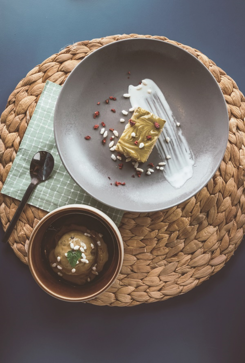 特別和木柵知名甜點「貓茶町」聯名,將台灣茶與在地食材注入創意,鐵觀音冰淇淋不加一滴水,選用高品質鮮奶油及牛奶,融入鐵觀音,綿密細緻、茶香渾厚、回甘悠長。厚焙烏龍茶乳酪,嚴選重火焙製的烏龍茶,與高品質奶油和乳酪融合厚實飽滿的層次口感,齒頰留香、回味不已。