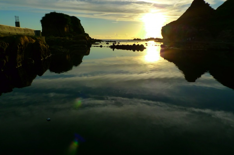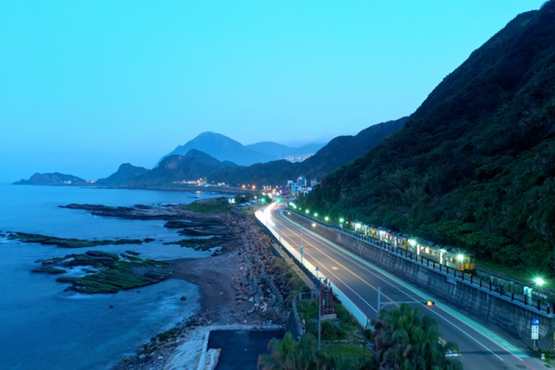 而位在八斗子車站旁的「潮境公園」,有美麗海景,且白天可以近距離觀賞周遭的海岸地質及潮間帶生態,也可遠眺基隆嶼,日暮時分,不僅可以看到迷人的夕陽,更可賞如寶石般閃爍的九份燈火。