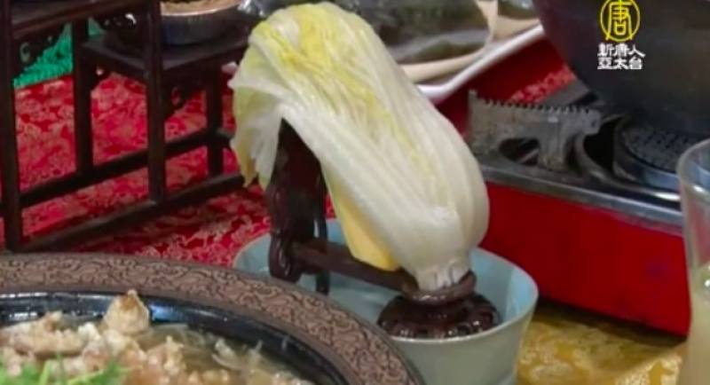 商圈業者 吳品諭:「故宮的國寶翠玉白菜,那結合我們東北的酸白菜,做成我們的「翠玉白菜鍋」;這個造型整個是1比1,模仿就是我們翠玉白菜的架子跟我們的汝窯,然後加上東北酸白菜,成為我們餐廳最主要的主推明星商品。」